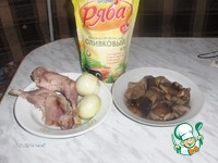 Окорочка освободить от кости и порезать кубиками. Смешать курицу с луком и грибами, добавить по вкусу майонез. Посолить и поперчить по вкусу. Перемешать. |