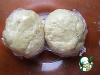 Замесить крутое тесто, разделить его на две части, укрыть пищевой пленкой или сложить в пакет, дать постоять 20 минут |