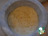 Мякиш черствого пшеничного хлеба протереть, я сделала это в ступке при помощи пестика. |