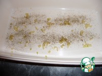На дно формы выдавить чеснок через пресс или мелко нарезать, посыпать черным перцем. |