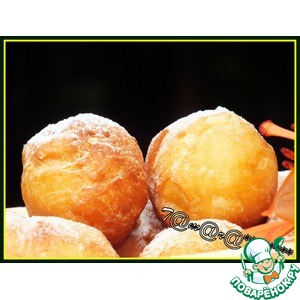 Обжаривать пончики в масле до золотистого цвета. Когда пончики остынут, посыпать сахарной пудрой.