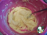 Потом небольшими порциями добавляем просеянную муку, крахмал. Получается довольно густая масса. |