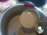Затем оставшуюся сухую смесь и 0,5 стакана молока, не переставая взбивать... И в конце влейте горячую воду и размешайте ложкой. Не пугайтесь, оно получится жидким, так и должно быть. |