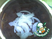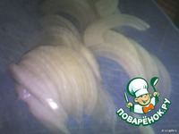 Баклажаны промываем холодной водой от лишней соли, стряхиваем воду (можно не обсушивать) и кладем на лук. |