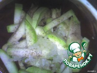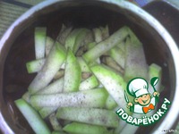 Кабачок режем брусочками (примерно такого же размера, как и баклажаны) |