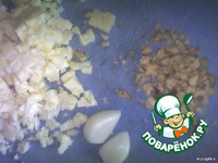 Брынзу режем мелкими кубиками, орехи рубим помельче, чеснок чистим |