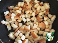 На сливочном масле обжариваем кубики белого хлеба до румяной корочки. Сливочное масло придает гренкам тонкий сливочный аромат. |