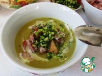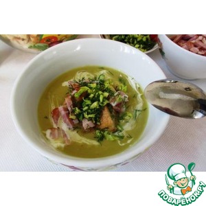 Наливаем в тарелку суп, кладем щепотку грудинки, горстку греночек, посыпаем зеленью и наслаждаемся вкуснейшим супом! По вкусу можно добавить столовую ложку сливок. |