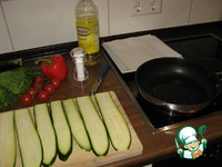 Выкладываем немного начинки на край цуккини, заворачиваем рулетом и произвольно распределяем на нашей основе. |