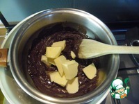 На водяной бане растопить 140 г шоколада, помешивая деревянной ложкой. Добавить сливочное масло, нарезанное небольшими кубиками. Отставить остывать. |