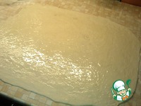 Тесто растягиваем аккуратно на руках или на столе (кто как умеет). Растянуть надо тонко, чтоб просвечивало тесто. |