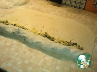 Завернули улиткой и укладываем на противень. "Улитку" нужно немного "помять" руками или "утрамбовать". Будет мягче и сочнее. |