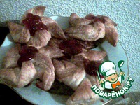 На сайте были примеры свертывания теста, воспользовался одним из способов. В микроволновке с грилем выпекать 5 - 7 минут до корочки. Сверху положить варенье и посыпать корицей... |