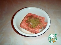 Для начала берем наш фарш, выкладываем его в посуду, в которой будем его замешивать - любая удобная для вас миска - и добавляем туда соль, приправы и одно яйцо. Хорошенько все перемешиваем |