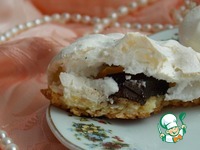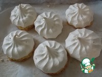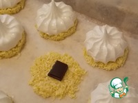 На середину каждой лепешки из кокосового теста кладем кусочек шоколада и отсаживаем сверху безе из кондитерского мешка или просто ложкой. Подровнять края. Они не растекутся. |