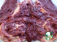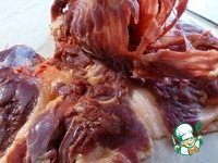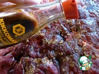 Полить соевым соусом «Киккоман» и оставить мясо на два часа для того, чтоб оно промариновалось. |