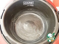 Смажьте чашу мультиварки сливочным маслом достаточно жирно, так, чтобы было хорошо смазано дно, и боковые стенки примерно чуть ниже третей части чаши (пирог хорошо поднимается!). |