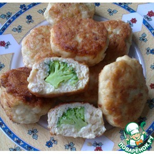 Описание: Котлеты из куриного филе с капустой брокколи. Нежные, мягкие и сочные котлеты подойдут для обеда или ужина. Внутри каждой котлеты есть брокколи, что придает им особый вкус и сочность.