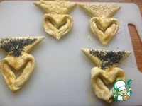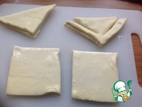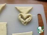 Тесто разделить на квадраты и сложить в треугольник, сделать надрезы, как на фото. Тесто не раскатывать |