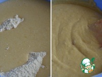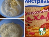 Кукурузную и пшеничную муку просеять, добавить сахар, разрыхлитель (или соду), хорошо размешать. |