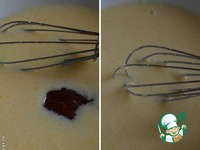 В отдельной посуде взбить венчиком яйца, добавить растопленное сливочное масло, влить молоко, перемешать. |