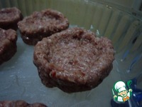 Сформировать котлетки в виде шайбы с бортиками. Выложить в посуду для запекания. Поставить в разогретую до 200 градусов духовку на 15 минут. |