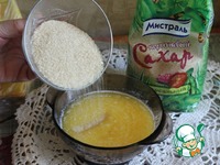 Готовим песочно-миндальное тесто. Муку 25 г, 25 г миндальной крошки, коричневый сахар 25 г, сливочное масло 25 г тщательно размешать |