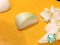 Пока мясо обжаривается. Лук нужно почистить и нарезать именно так, как показано на фото. Муж сказал, что это очень важно. |