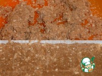 Хорошенько все размешиваем и формируем пласт. Несмотря на внешнюю "несобранность", масса нормально трамбуется. Укладываем ее как можно плотнее. Разрезаем пласт на мелкие кусочки прямо в форме. |