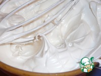 Взбиваем белок с сахаром. Взбиваем, пока масса не станет гладкой, блестящей, перламутровой. Этот самый перламутровый блеск верный признак того, что белок достиг нужного состояния. |