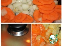 Сделать зажарку. тушить под крышкой морковь с луком на подсолнечном масле 3 мин. снять крышку и поджарить еще в течение 1 минуты. |