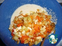 К мясу добавить овощи, перемешать, немного подсолить. |
