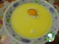 Сливочное масло растопить, добавить молоко, яйцо и несколько капель миндальной эссенции, хорошо взбить вилкой. |