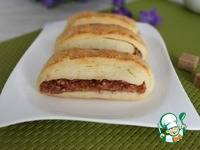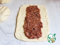 В середину кладем нашу начинку. Размазываем ее, но не густо. |
