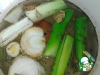 Выложите смесь в бульон, поварите вместе, на этом этапе я постоянно пробую суп - если не хватает солености, добавляю соевый соус, если сладости - коричневый сахар и т. д. |