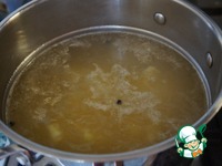В кипящий бульон опустить картофель, довести до кипения и варить 5 минут, |