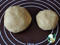 Тесто делим на два шарика в пропорции 2 к 3. И отправляем в холодильник (лучше морозильную камеру) на 20 минут. |