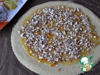 Намазываем джемом тесто, отступив от края около 2 см. |