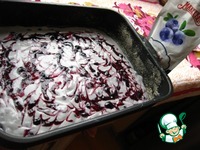 Сверху полить черничным джемом "Махеевъ". Он усилит черничный вкус нашего пирога. Зубочисткой сделать разводы. |