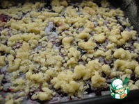 Посыпать тесто крошкой, оставляя "пробелы", чтобы показать черничность пирога (знаю, что такого слова в русском языке нет, но именно оно наиболее уместно при описании вкуса этого блюда) |