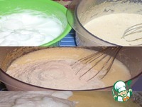Чертим на пергаменте круг диаметром 19 см. Оформляем белковую массу и в духовку. Первые 30 минут температура 150С, далее час и более при температуре 100С. |