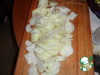 Нарезаем очищенный лук. В рецепте написано "мелко", я своими любимыми полукольцами, семья так любит больше, а вкус от этого не страдает. |