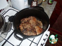 Топим в казане сливочное масло и обжариваем в несколько приемов мясо до румяной корочки. |