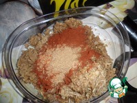 Орехи, чеснок прокручиваем в мясорубке, добавляем шафран, кориандр, красный перец, черный перец. Тинатин все, кроме орехов, измельчает в ступке, я процесс упростила. |