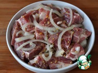 Добавляем к мясу с луком маринад, всё тщательно перемешиваем. Оставляем мариноваться на 1 час. |