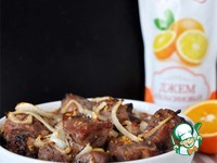 Готовим маринад с использованием апельсинового джема от "Махеевъ". При использовании этого джема мясо приобретает нотку вкуса цедры. |