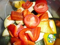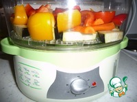 Овощи нарезать произвольно, сложить в пароварку (баклажан можно почистить). |