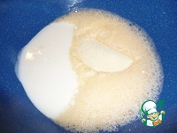 Добавить крупу манную, смешанную с разрыхлителем, кефир, немного подсолить. |