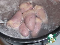 Сердечки отварить в подсоленной воде 2-3 мин. Остудить. |
