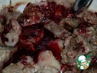 Слоеное тесто (готовое) разморозить. За 5 мин до окончания обжаривания к мясу добавить малиновый джем. |